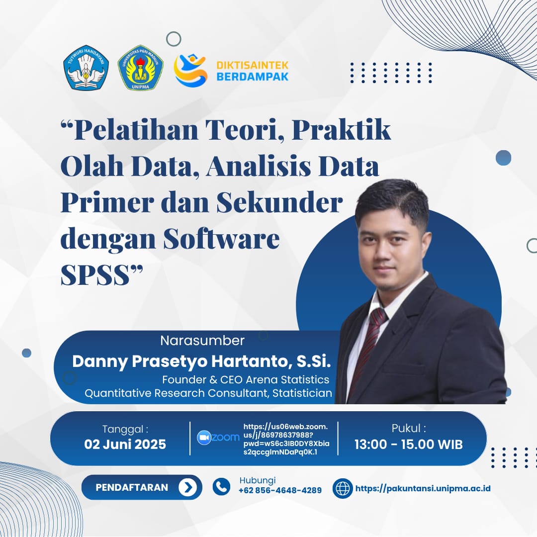 Pengumuman Pelatihan Teori, Praktik Olah Data, Analisis Data Primer dan Sekunder dengan Software SPSS dilaksanakan tanggal 2 Juni 2025 . Terlampir pengumuman dari Prodi Pendidikan Akuntansi
